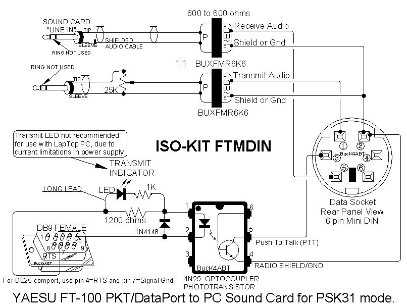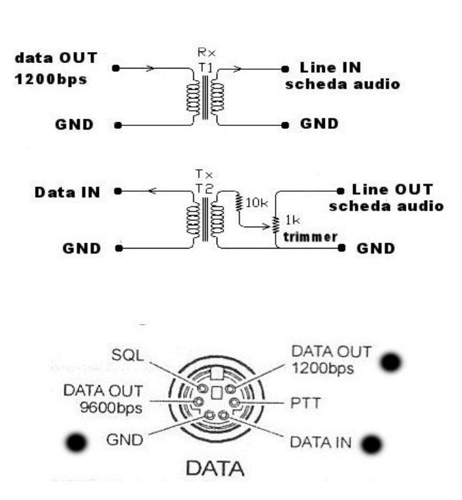 We already have cat control and Ptt control by Rs-232c port, now we need to "take" audio in and out. I had planned to use the mini 6 pin connector (data connector), using the pin 1 (data out) to transmit the audio (in audio in of audio pc), pin 5 (data out) to receive audio (audio out pc) and pin 2 for the common GND. To do a good job I planned to put 2 trasformers 1:1 to isolate. The problem is thath someone told to us thath this way is incorrect, cause the pin1 and pin5 of the mini 6 pin connector of the radio is only for the data transfer (digi modes) and not for the normal phony.